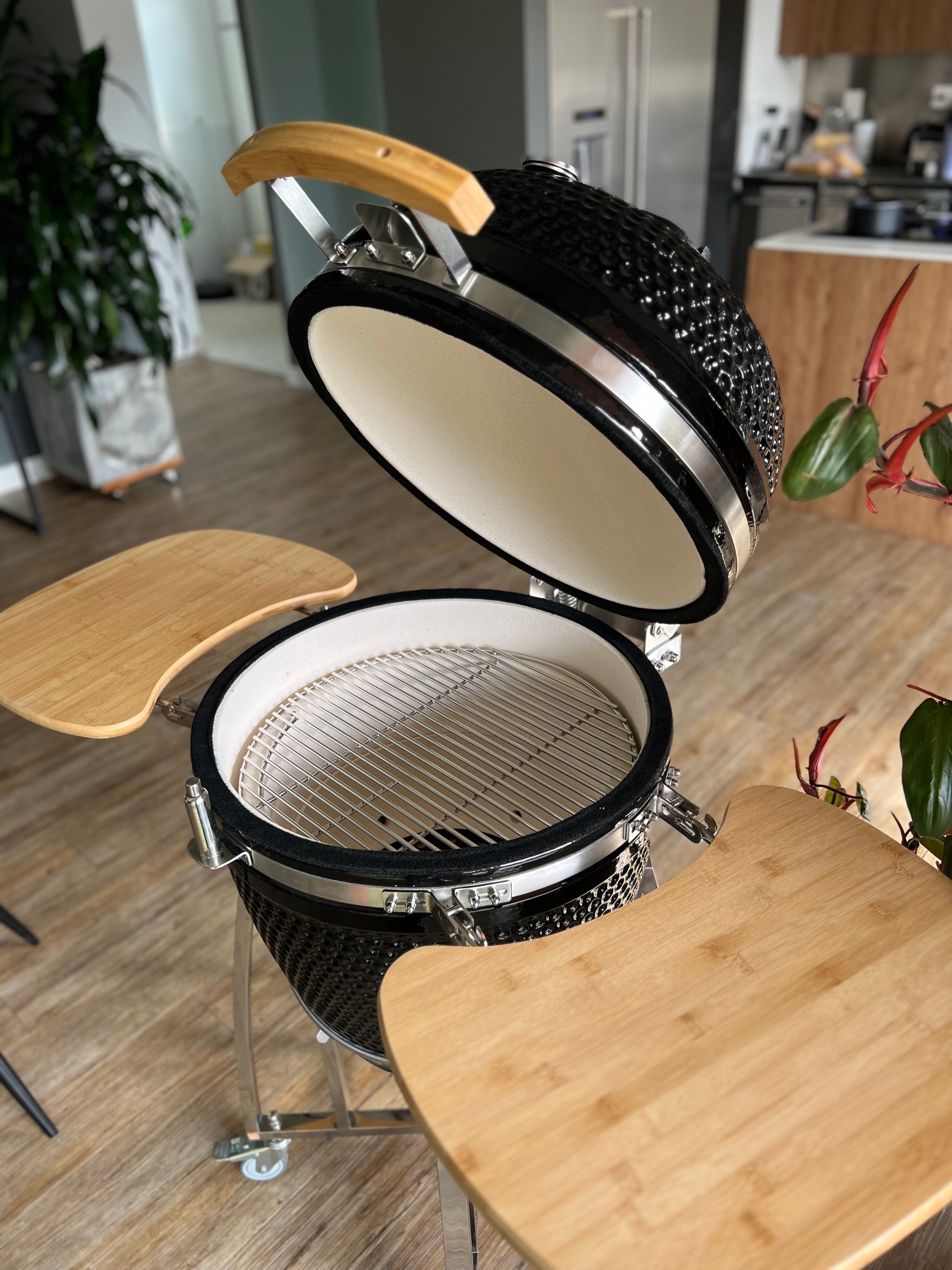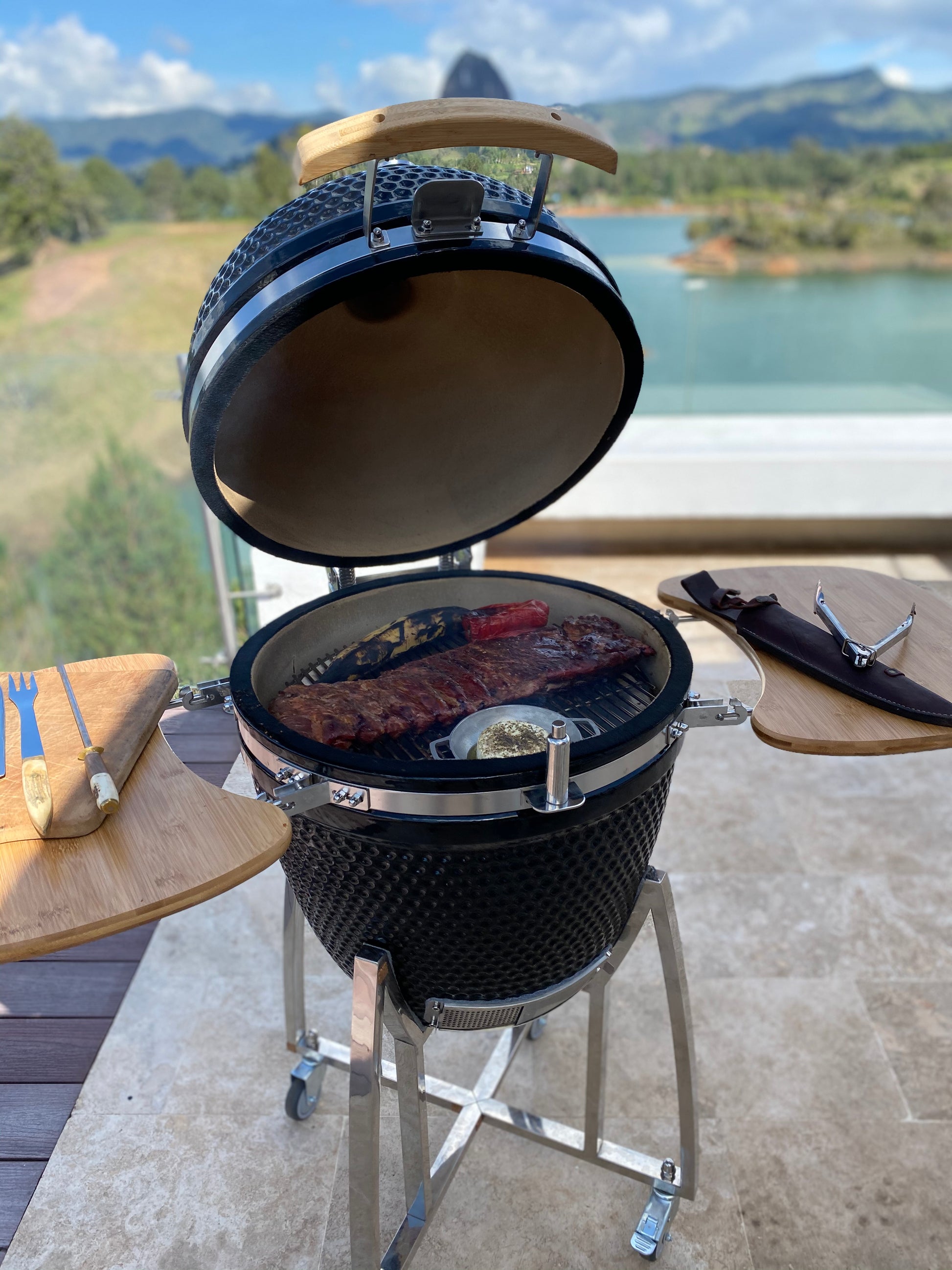 Disfruta lo mejor de la cocina con carbón con nuestra nueva línea de parrillas tipo Egg Kamado. Los hornos Kamado son extremadamente versátiles. No solo se pueden usar para asar o ahumar, sino que también permiten hornear pizzas, pan, pasteles y galletas con facilidad. Gracias a sus excelentes propiedades de retención de calor, es posible alcanzar y mantener altas temperaturas mediante el control preciso del flujo de aire a través de las rejillas de ventilación superior e inferior. Las altas temperaturas son ideales para cocinar rápidamente hamburguesas y salchichas, mientras que las bajas permiten cocinar cortes grandes por más tiempo. ¿Por qué no probar agregando astillas de madera al carbón o combinar distintos sabores de astillas para darle aún más sabor a tus carnes? Esta parrilla tipo Kamado es una barbacoa, una parrilla, un ahumador y un horno, todo en uno.