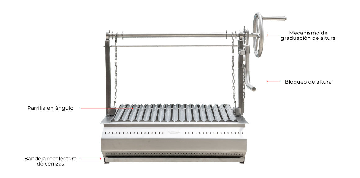 - Sistema de graduación de la altura para controlar la temperatura de la parrilla.