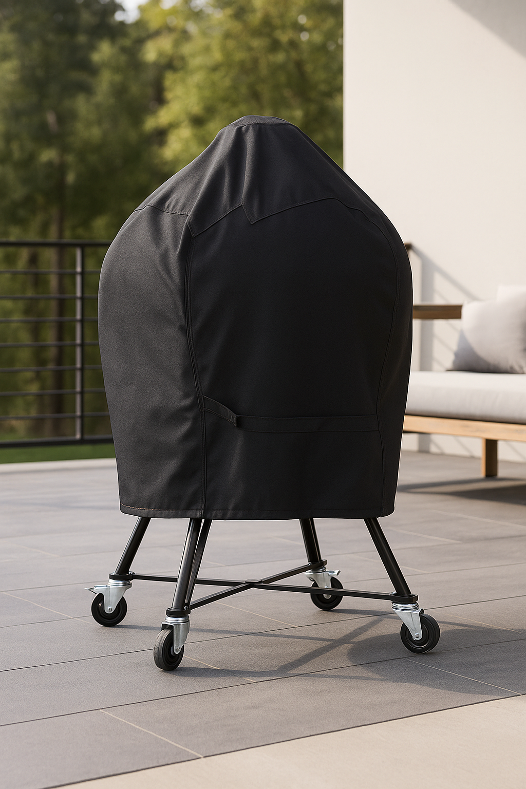 Este forro de alta resistencia está diseñado específicamente para cubrir tu parrilla tipo Kamado y protegerla de los elementos como lluvia, sol, polvo y humedad.