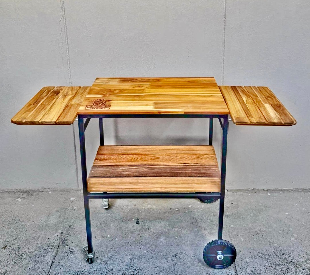 Mesa auxliar en hiero y madera tratada para exetiores., ideal para ampliar su espacio, facil de transportar y muy practica para tener un lugar adecuado para trabajar.
